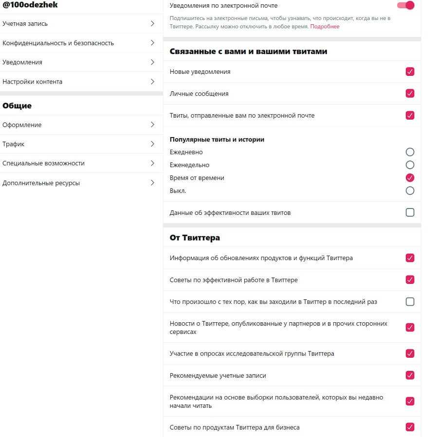 - Уведомления. Твиттер любит присылать очень много писем. Чтобы защитить корпоративную почту от горы уведомлений, зайдите в раздел «Настройки и конфиденциальность» — «Уведомления» — «Уведомления по электронной почте» и выберите только то, что вам нужно. Тут же можно настроить пуш и смс-уведомления.