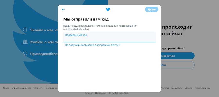 Поздравляю, регистрация в Твиттере завершена. Нажмите кнопку «Далее