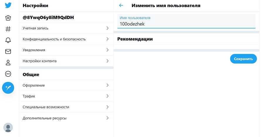 - Имя пользователя и профиля. Имя пользователя — это адрес вашей страницы в формате @name. Лимит — 15 знаков. Имя пользователя должно быть напрямую связано с вашим брендом, отлично, если оно одинаковое или похожее во всех корпоративных соцсетях. Имя профиля — название странички, то имя, которое вы указывали при регистрации. Его лимит — 50 знаков. Менять можно в любое время. Чтобы настроить имена нажмите на три точки в меню слева, выберите пункт «Настройки и конфиденциальность».