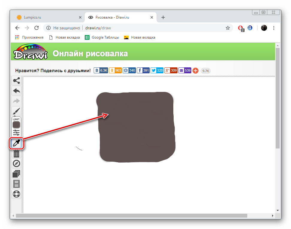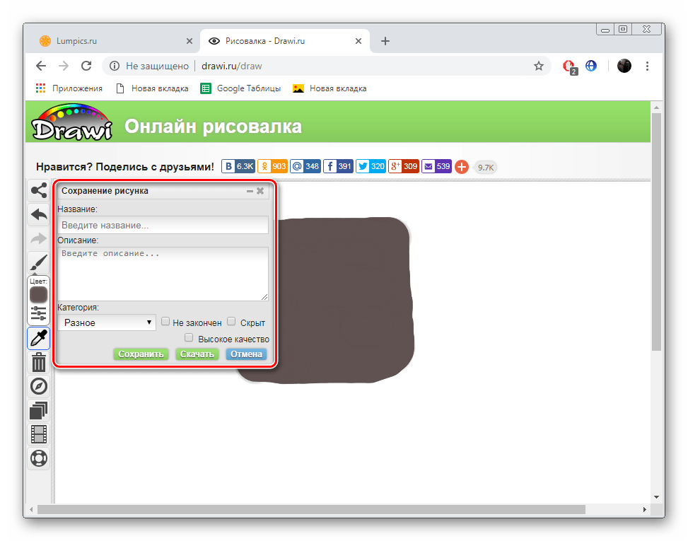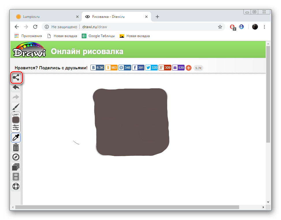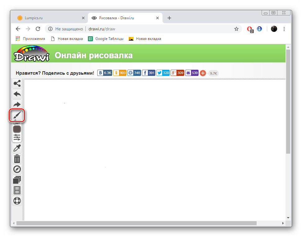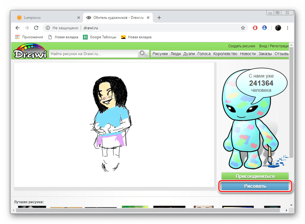 Drawi представляет собой некое подобие социальной сети, где все участники создают картины, публикуют их и обмениваются между собой. Конечно, на таком веб-ресурсе присутствует отдельная возможность рисования, а задействовать ее можно так: