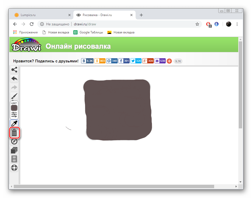 Удалить нарисованный слой можно с помощью соответствующей функции. Ее значок выполнен в виде мусорной корзины.