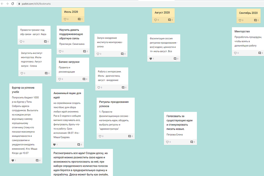 - Padlet — онлайн-стикеры для визиток знакомств, сбора идей и составления планов.