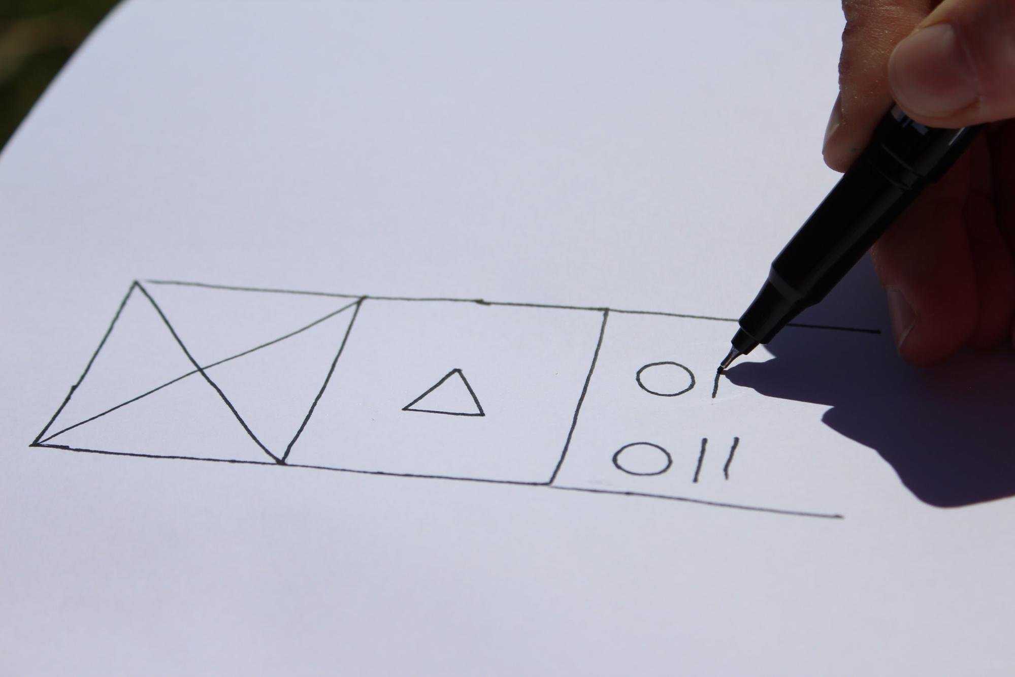 Иконки, кнопки и другие элементы изображают схематично в упрощенном виде. Однако нужно соблюдать форму и делать элементы такими, какими они будут на макете.