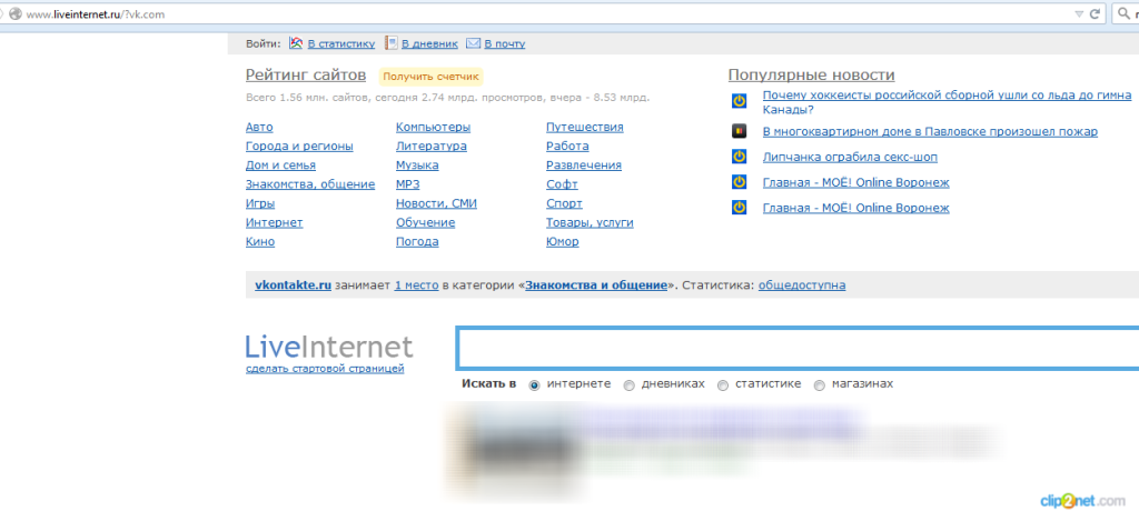 Теперь рассмотрим пример с закрытой статистикой liveinternet, которая дает возможность проверить посещаемость сайта онлайн. Чтоб было интересно, я решил взять всем известный 1-ый канал. Проверил, статистика закрыта. Но несмотря на то, что нужная нам информация под паролем, мы можем узнать кол-во уникальных пользователей.