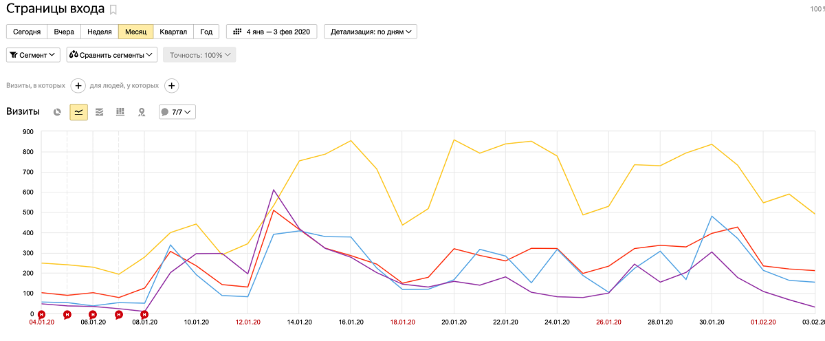 - Отобрать список страниц с высоким показателем отказов для дальнейшей проработки;