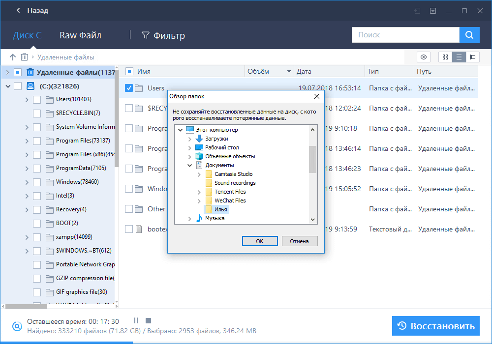 Готово, удаленные файлы восстановлены.