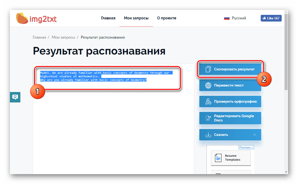 IMGonline – бесплатный сервис для распознавания текста с изображения. По умолчанию платформа не позволяет выполнить перевод, поэтому полученный результат придется скопировать и вставить в какой-нибудь онлайн-переводчик. Качество считывания текстовки с фотографии на довольно неплохом уровне, однако иногда всё-таки бывают некоторые ошибки. Чтобы правильно воспользоваться данным сервисом, следуйте рекомендациям инструкции: