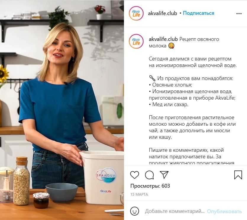 Например, мы решили использовать видеорецепты — популярный формат для food-блогов — для производителя ионизаторов воды Akvalife.