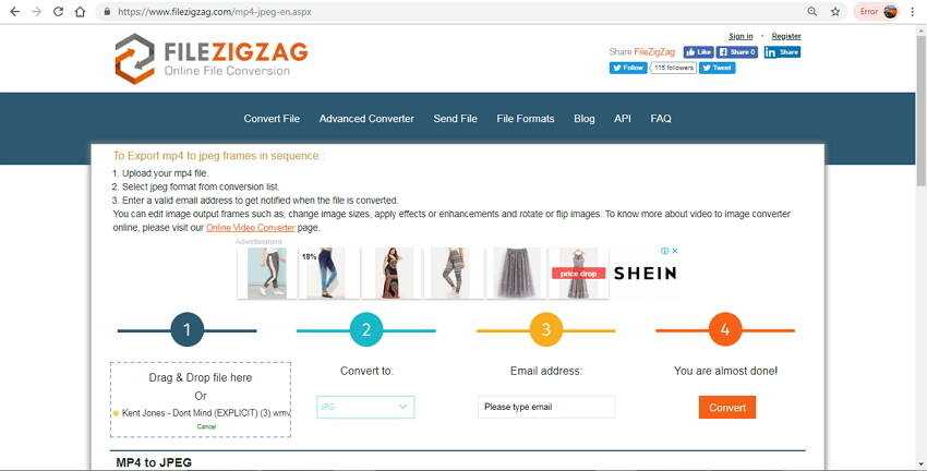 Это популярный бесплатный онлайн-конвертер видео в JPG, поддерживающий широкий спектр видеоформатов для конвертации. Программу можно использовать из браузера вашего ПК без необходимости установки или регистрации. Вам просто нужно добавить видео с вашего ПК, выберите JPG в качестве формата изображения и введите свой почтовый идентификатор. Изображения будут извлечены из ваших видео, а их ссылка для скачивания будет отправлена на указанный адрес электронной почты. Программа также позволяет редактировать кадры вывода изображения, такие как изменение размера изображения, применение эффектов, поворот или переворачивание изображений и другие форматы, такие как BMP, JPEG, GIF, PNG и TIFF.