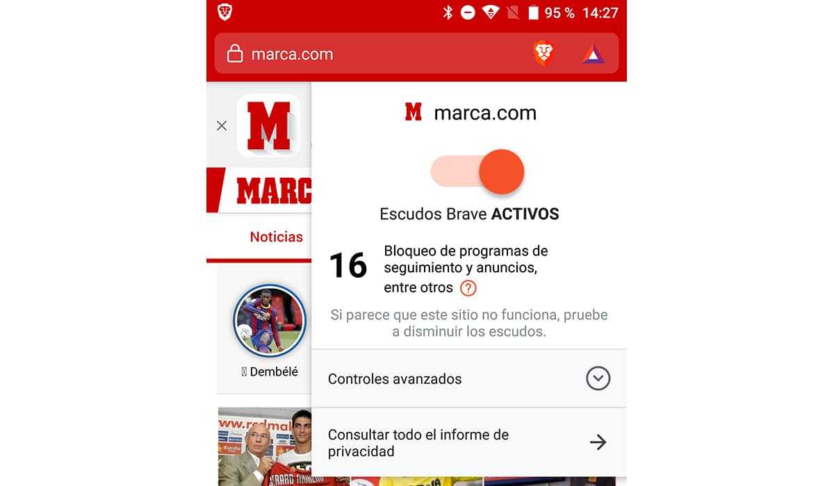 Со средним баллом 4,7 из 5 возможных и более чем 400.000 XNUMX оценок Brave является одним из лучших браузеров, доступных на Android. Смелый, не только позволяет намблокировать любой вид рекламы (включая всплывающие окна), но также включает в себя систему защиты от отслеживания, которая поможет нам не допустить, чтобы веб-страницы знали, что мы посещаем, и тем самым знали наши вкусы, предпочтения, приоритеты …