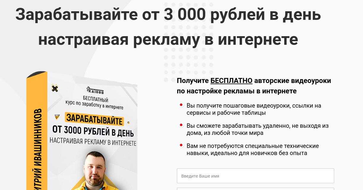 Обучающая программа: авторский онлайн-курс Дмитрия Ивашинникова по обучению рекламе в интернете и получении профессии специалиста РСЯ. Материалы включают последние методы и способы проведения рекламных кампаний 2019 года. Обучение проходит в дистанционном формате по системе: посмотрел-внедрил-заработал.