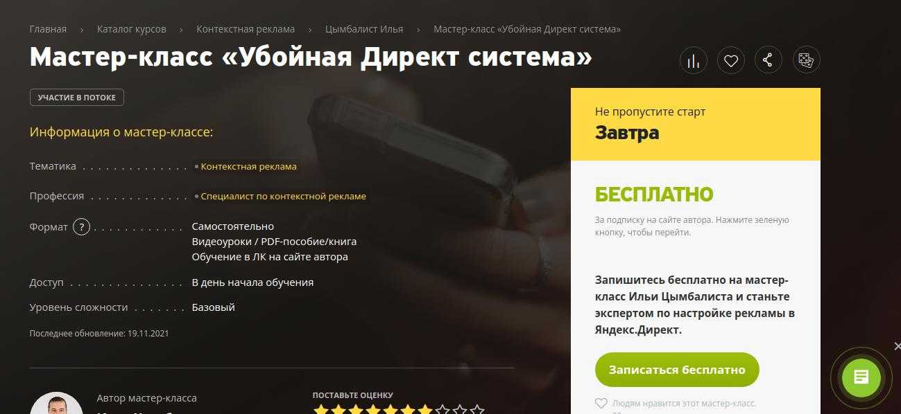 В нем Илья Цымбалист поделится своим опытом и даст готовое решение – пошаговую систему Яндекс.Директ, которая уже доказала свою эффективность.