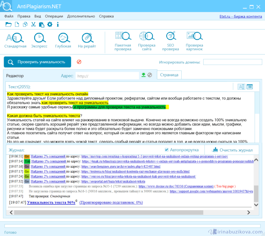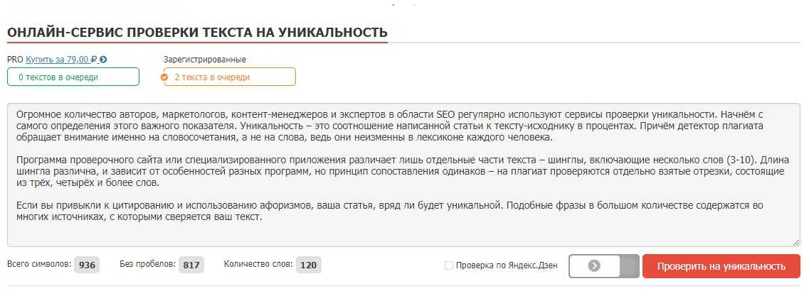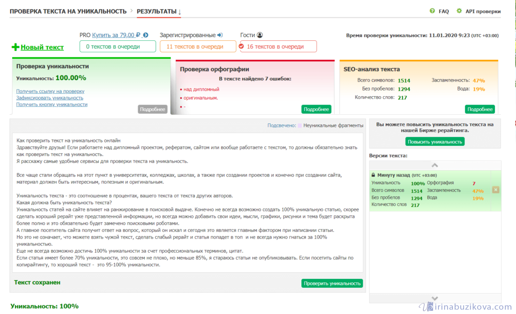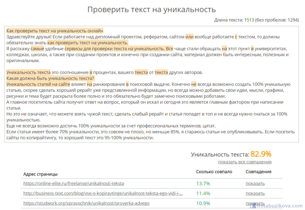 Ниже я продемонстрирую, как я проверяю уникальность текста на данном сервисе.