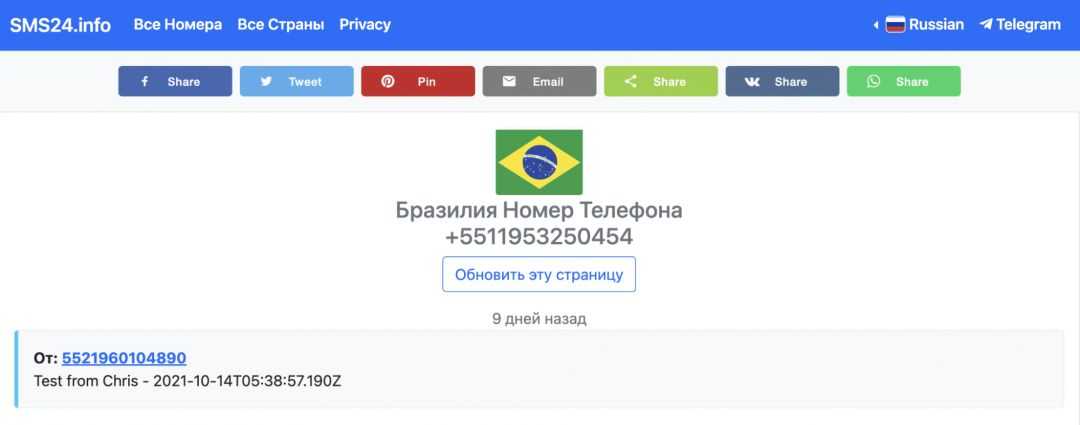 Рядом с каждым телефоном указано, сколько раз он использовался в течение последних 24 часов. Чем меньше, тем больше вероятность того, что номер будет принят сайтом, на котором вы проходите регистрацию.