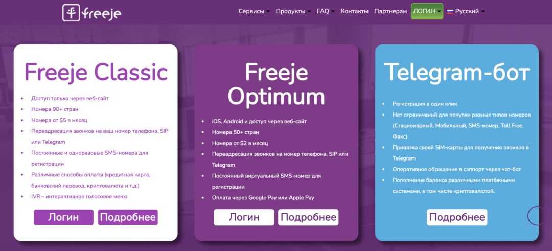 - freeje.com — онлайн номера для приема SMS от $1, аренда постоянного вирт.номера от $5 в месяц.