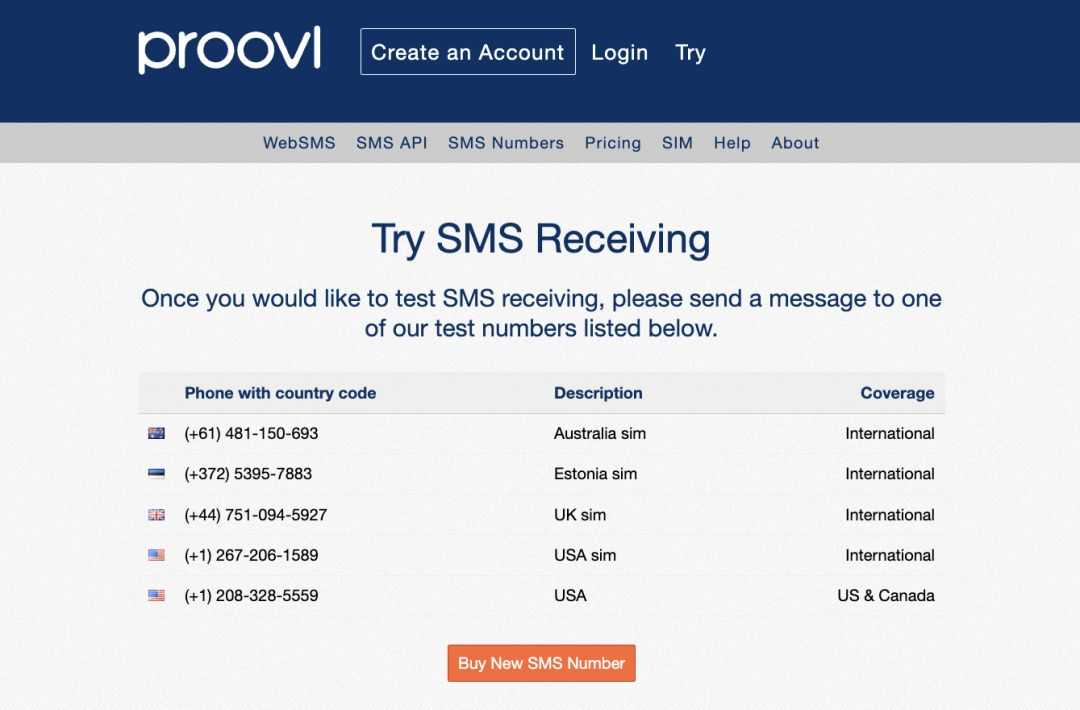 Пробный прием СМС на Proovl не требует регистрации (полученное сообщение отображается на сайте). Если этого недостаточно, после создания аккаунта и пополнения счета пользователю предоставляется выбор из десятка телефонов Европы и США.