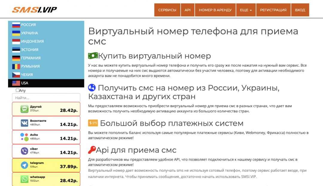 Это номер для одноразового использования, который позволяет вам получить один код от выбранного веб-сервиса (напр.: ВКонтакте, Telegram, WhatsApp, Viber). С помощью этого кода вы сможете подтвердить свой аккаунт.
