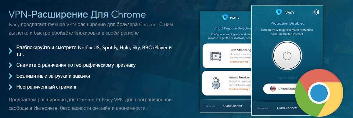Ivacy VPN для браузера – доступен только для Chrome, предлагает полный доступ к Netflix US, Spotify, Hulu, Sky, BBC iPlayer и другим сервисам. Защищает от утечки IP.