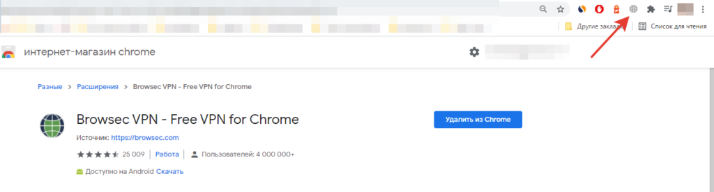- Перейти в браузер Google Chrome и в правом верхнем углу экрана нажать на значок VPN.