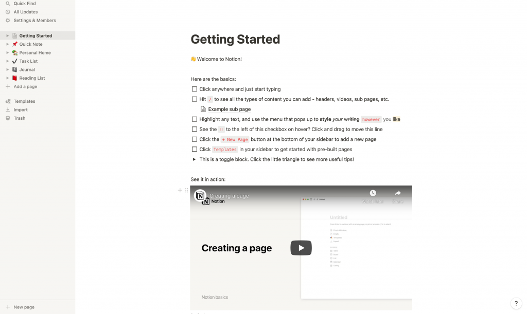 В Notion можно перенести ваш бумажный блокнот или привычный таск-менеджер. Допустим, вы используете систему bullet journal — в Notion можно повторить структуру блокнота: вот как сделали мы.
