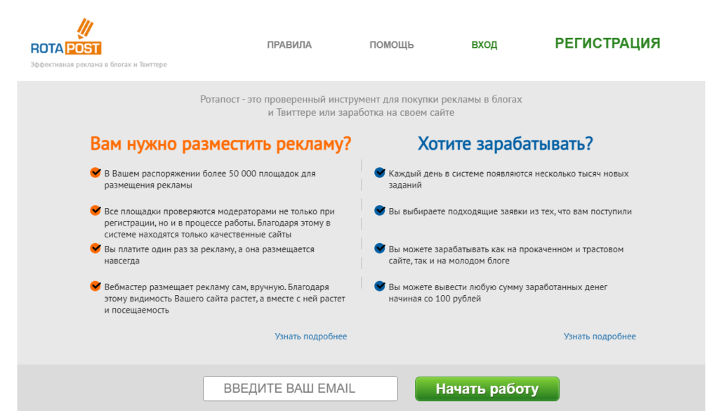 Rotapost – сервис, который имеет очень много положительных оценок от пользователей. Является хорошим инструментом для продвижения даже для новичков. Модерация принимает даже самые молодые блоги. Отличный вариант для старта.