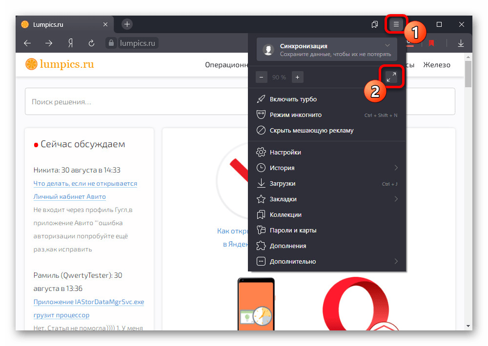Шаг 1. Перейдите в меню с помощью верней угловой иконки в виде лого браузера Опера. Если у вас не закреплена боковая панель, рядом с иконкой вы так же увидите надпись «Меню».