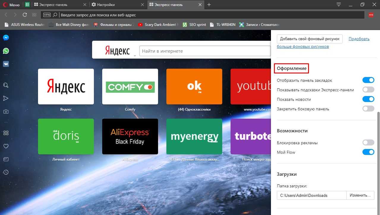 Настройка экспресс панели в Опере
