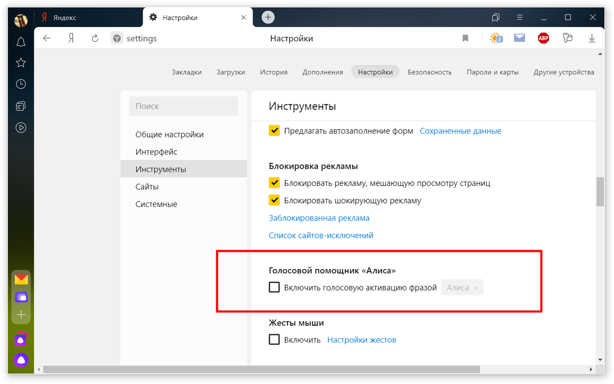 Как отключить голосовую активацию Алисы в Яндекс.Браузере?