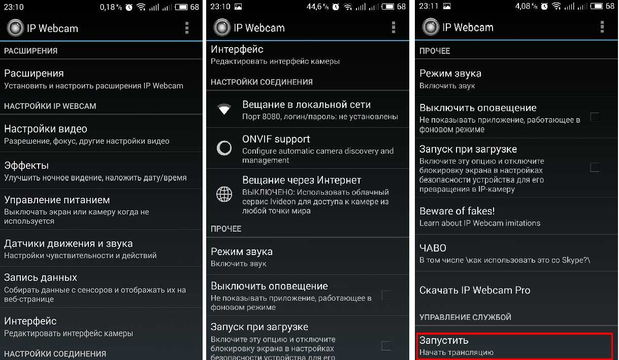 Установка и использование IP Webcam