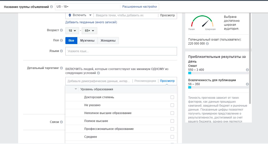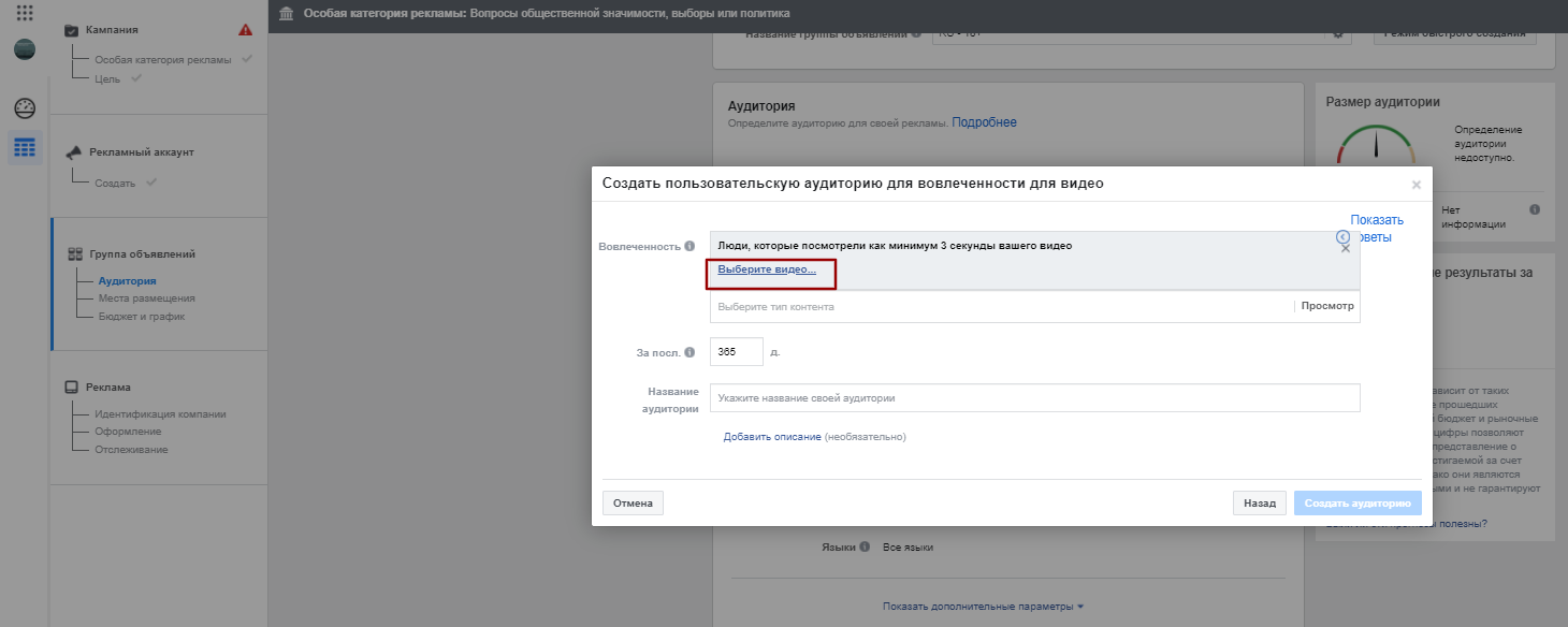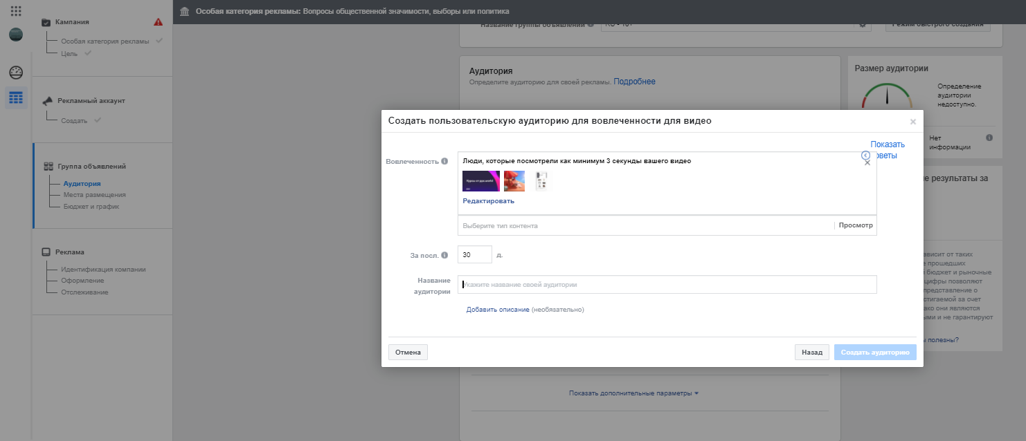 «Вовлеченность» поможет при создании нужной аудитории для последующих рекламных кампаний, когда будете делать ретаргетинг.