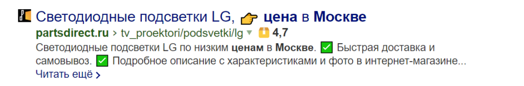 Смотрим сниппеты в поисковой выдаче, учитываем их, чтобы сделать свои привлекательней. Чем можно отличиться от конкурентов, какие слова использовать в заголовке?