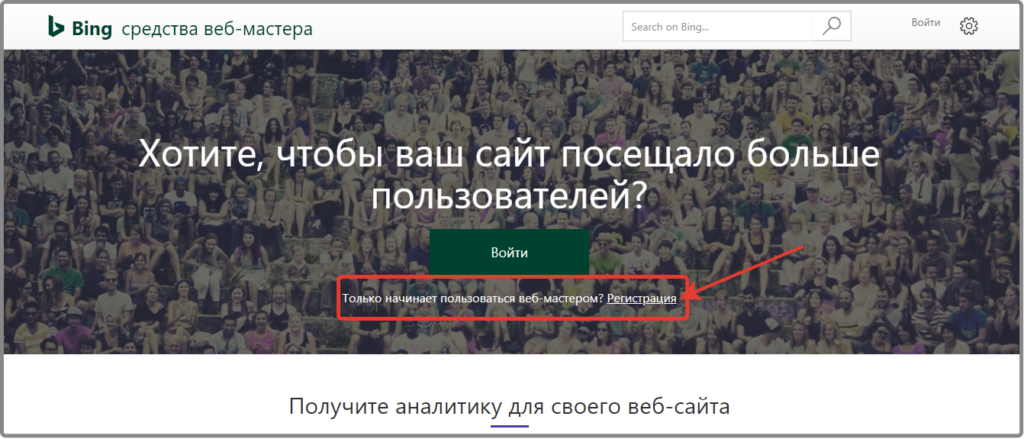 У этой крупной поисковой системы тоже кабинет для вебмастеров. Для того чтобы зарегистрироваться, нужно пройти на и пройти регистрацию. Все шаги выполняла в браузере Хром, со встроенным переводчиком.