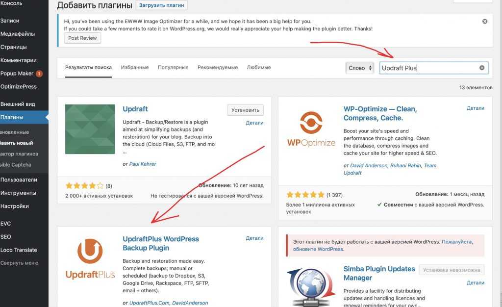 Большинство хостингов сегодня автоматически делают бэкапы сайтов. Но мы на всякий случай подстрахуемся. Используем для создания дополнительных резервных копий плагин «Updraft Plus».