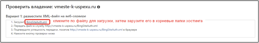 Второй Вариант. Разместить мета-тег проверки сайта поисковой системой, это добавить на в код Главной страницы сайта, между тегами следующую строчку кода: