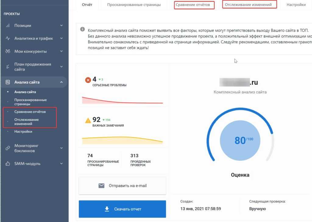 Если вы ведете проект в сервисах для продвижения, то они помогут определить самые серьезные проблемы и дать рекомендации. Например, в SeRanking можно настроить регулярный аудит и сравнивать аудиты между собой. Исправили проблемы, проверили, увидели изменения.