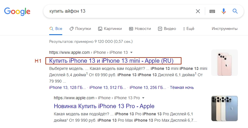 Следите за тем, чтобы заголовки страниц не превышали 60 знаков, иначе они будут обрезаны в результатах поиска. Указывайте основные ключевые слова в начале заголовка страницы.