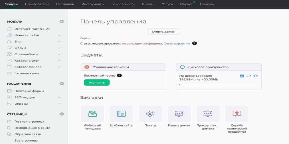 На текущий момент UCOZ остаётся чуть ли не единственным онлайн-конструктором в Рунете, который предоставляет возможность привязки своего собственного домена к сайту на бесплатном тарифе. Но стоит вспомнить, что это одна из старейших платформ на рынке, и всё сразу становится на свои места: крупная компания-владелец, максимальная функциональность, полный доступ к коду шаблонов, огромное сообщество, подробная документация и множество других фишек, которых нет у конкурентов.