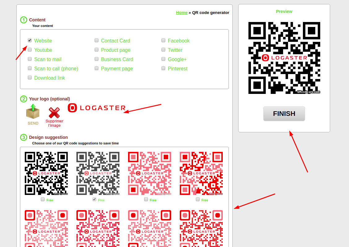 Мы не будем повторять преимущества, которые этот бесплатный генератор QR-кода представляет нам онлайн. Мы также можем выбрать тип контента и настроить его, как и в предыдущих