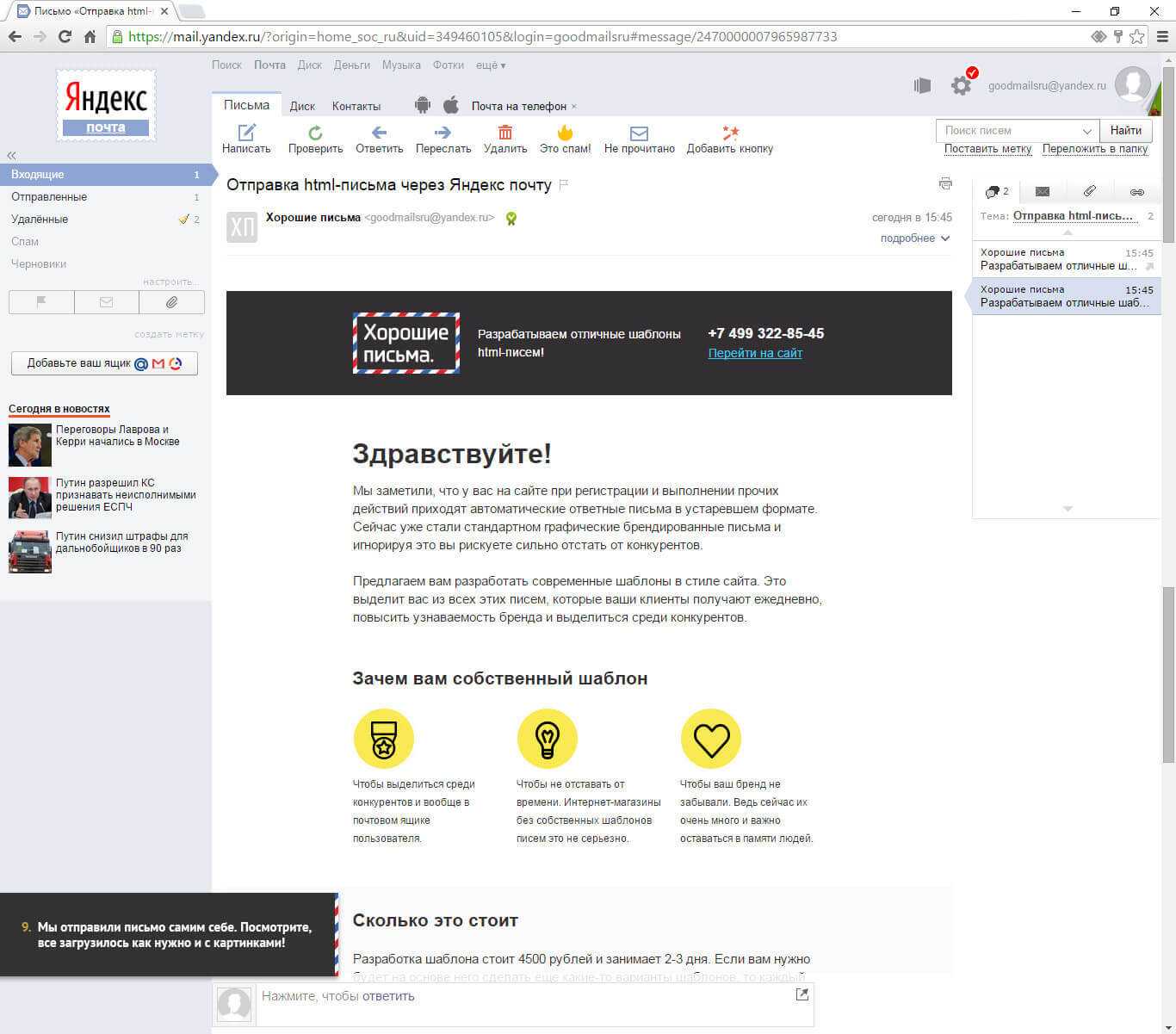 Шаг 3. Отправка html-письма в Яндекс Почте