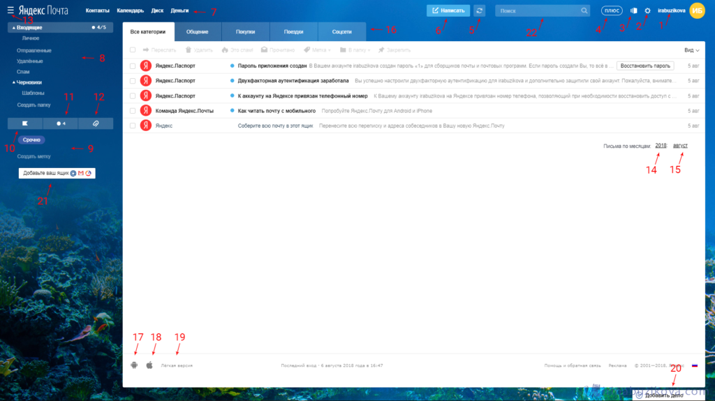 - легкая версия – упрощённое оформление интерфейса почтового ящика;
