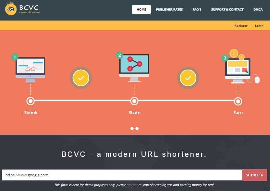 Bc.vc — еще один международный сервис по сокращению ссылок от турецких разработчиков. Первое, что бросается в глаза — это приятный, лаконичный дизайн.