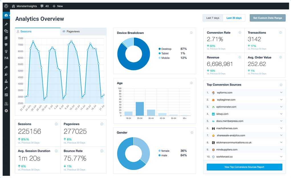 Любой список лучших плагинов Google Analytics для WordPress должен включать MonsterInsights и часто начинается с него.