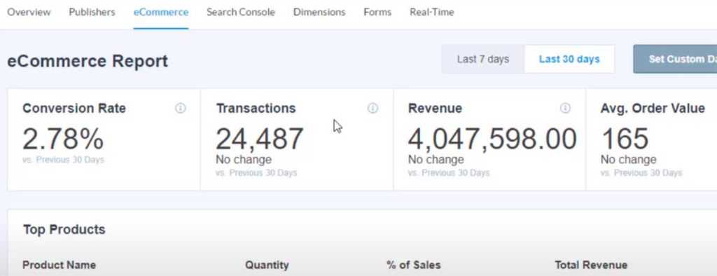 Вы можете точно определить свои лучшие продукты, увидеть общий доход и проверить показатели конверсии. Помимо этого, перед вами, на скрине выше: количество транзакций за определённый промежуток времени и средняя стоимость заказа (средний чек).