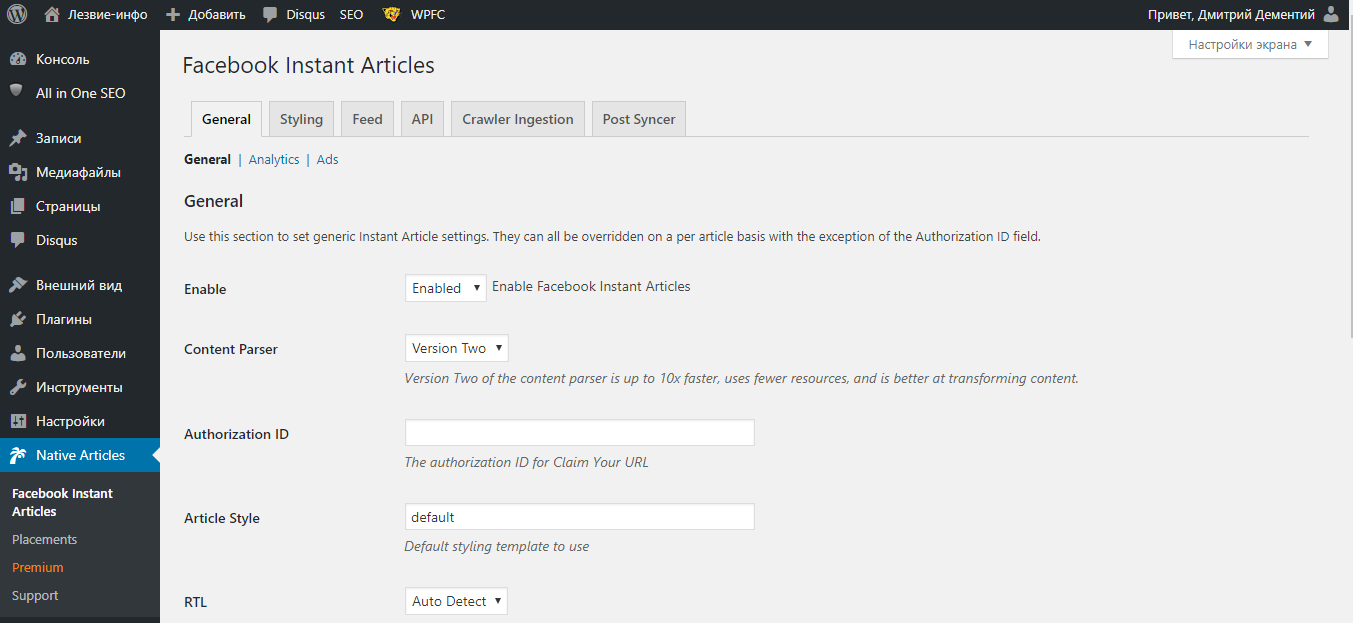 Плагин добавляет на сайт разметку, необходимую для реализации Instant Articles. Данные нужны для мгновенного отображения публикаций пользователям Facebook.