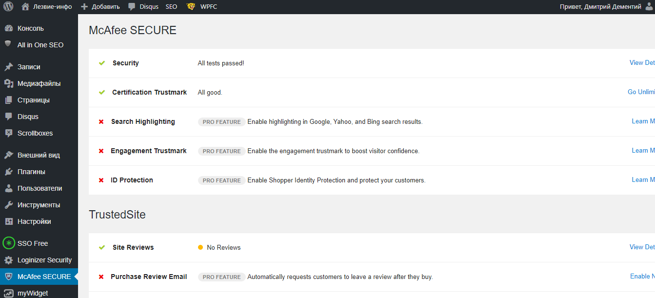 Плагин сканирует сайт на наличие вредоносного кода. Если проверка пройдена, на сайт можно добавить знак безопасности.