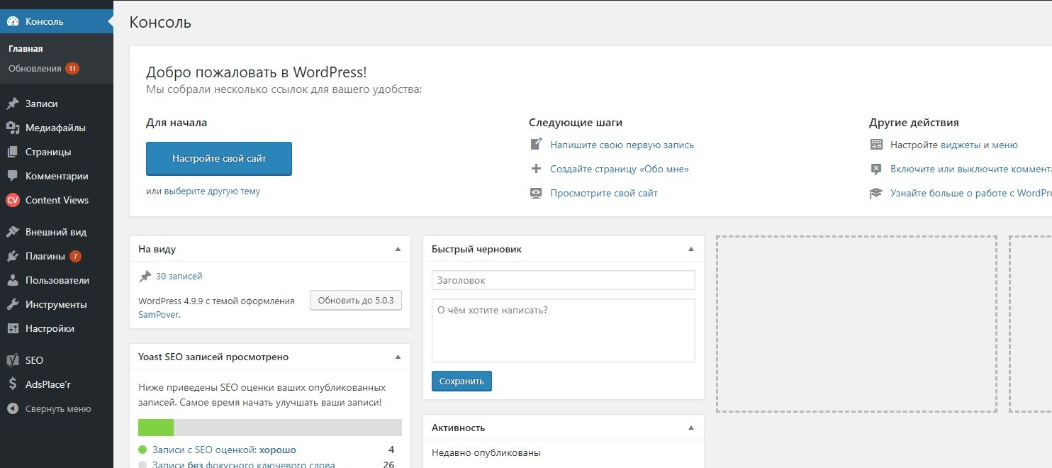 - WordPress имеет вполне понятный интерфейс административной части, поэтому работать в системе легко: