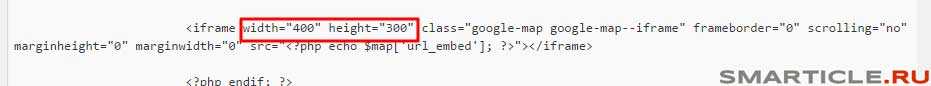 Тоже работает! Будьте внимательны, когда будете вставлять код. Потому что он содержит php запрос. Ни в коем случае не вставляйте его вложенным в другой php код цикла – получите ошибку и белый экран «смерти». В этом примере вы можете задать размеры карты. Длина
