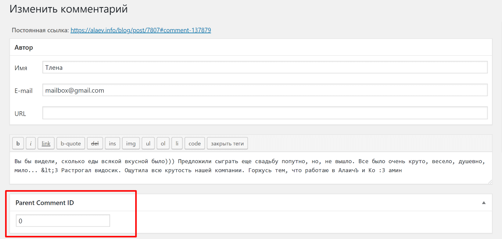 Так вот данный плагин позволяет при редактировании «ошибочного» комментария указать id комментария, под которым должен идти ошибочный комментарий. Ну вы поняли.