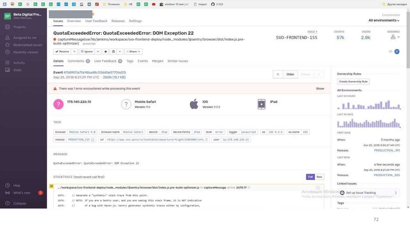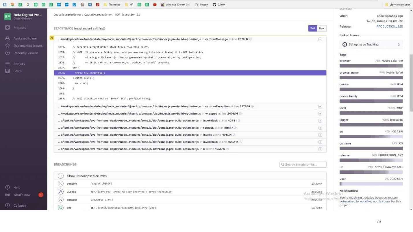 В Sentry есть StackTrace — тоже можно посмотреть, если нужно.
