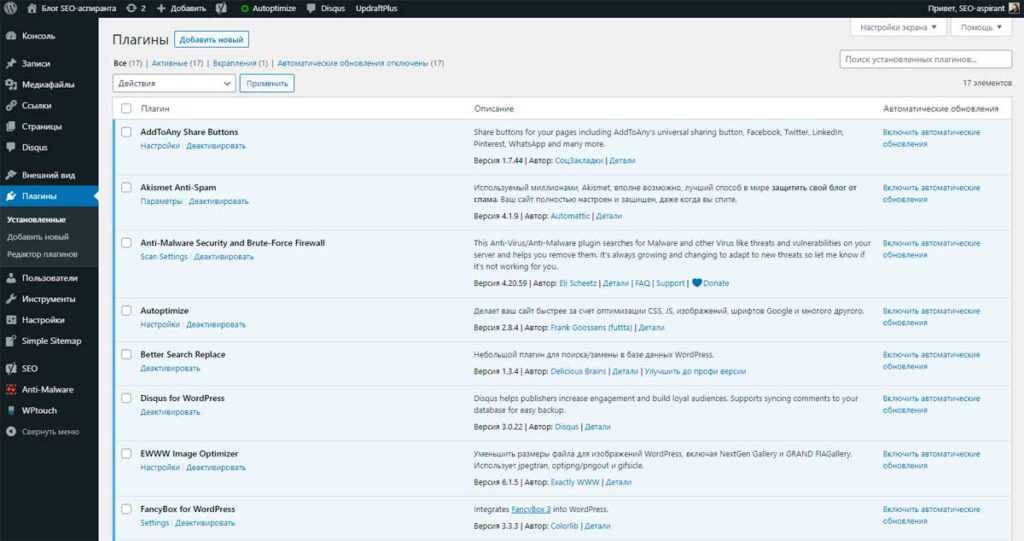Обычно на сайте плагинов установлено больше, чем реально необходимо для его бесперебойной работы